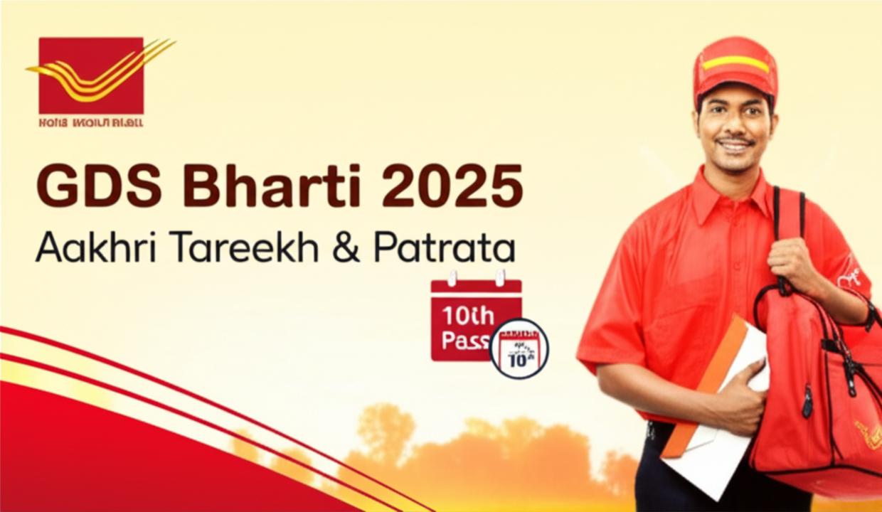 क्या आप एक ऐसी सरकारी नौकरी की तलाश में हैं जो आपको अपने गाँव या क्षेत्र में रहकर सेवा करने का मौका दे? तो आपके लिए इंडिया पोस्ट की ग्रामीण डाक सेवक (GDS) भर्ती 2025 एक सुनहरा अवसर लेकर आई है! यह भर्ती उन युवाओं के लिए विशेष रूप से डिज़ाइन की गई है जो 10वीं पास हैं और अपने स्थानीय समुदाय में योगदान देना चाहते हैं। इस लेख में, हम आपको ग्रामीण डाक सेवक भर्ती 2025 से संबंधित सभी महत्वपूर्ण जानकारियाँ विस्तार से देंगे, जिसमें आवेदन की अंतिम तिथि, पात्रता मानदंड, आवेदन प्रक्रिया और अन्य सभी आवश्यक विवरण शामिल हैं। हमारा लक्ष्य है कि आपको एक ही स्थान पर सभी सटीक और नवीनतम जानकारी मिल सके, ताकि आप बिना किसी परेशानी के आवेदन कर सकें।